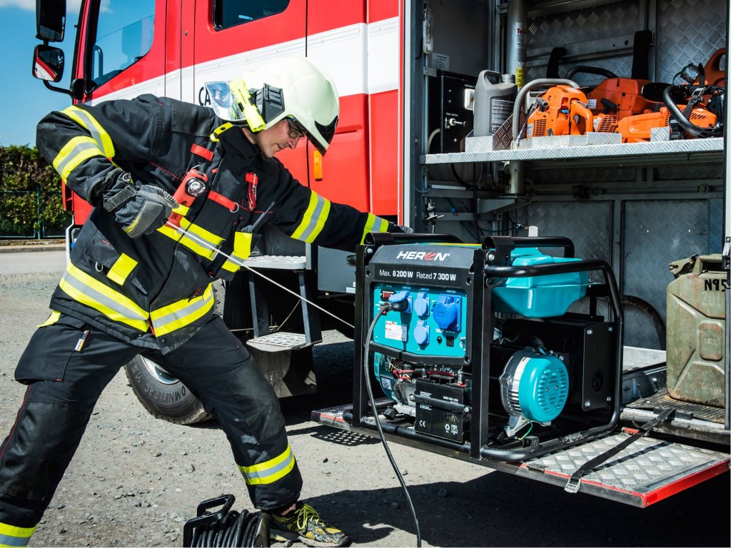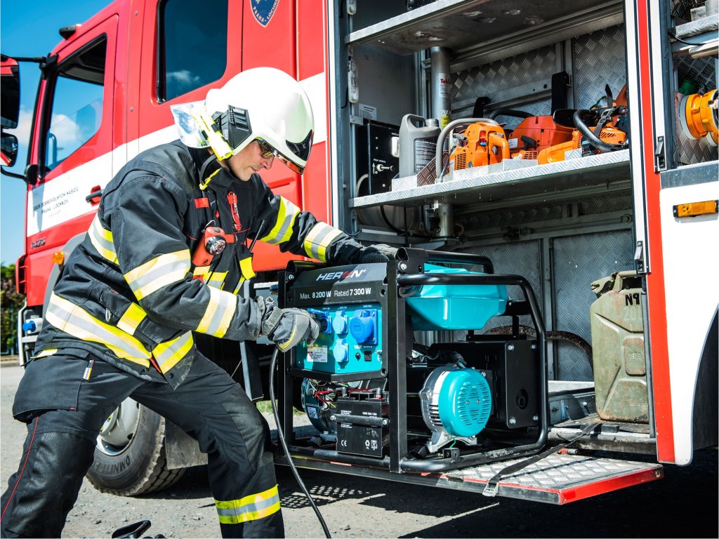 Elektrocentrála je určena k používání ve stavebnictví a při montážních pracích, ale také jako záložní zdroj elektrické energie pro mobilní servisní střediska a rekreační účely. Stroj je vybaven jednotkou AVR, která vyrovnává výstupní napětí. Proto je možné použít je k napájení jemných elektronických přístrojů, za předpokladu dodržení správného postupu používání. Sklopitelné madlo a pevná gumová kola, která jsou součástí dodávky, umožňují snadný převoz elektrocentrály na místo potřeby podobným způsobem jako cestovní zavazadlo s madlem a kolečky. Centrála je vybavena třemi 16A a jednou 32A zásuvkou s 230V, které umožňují připojit jak běžné spotřebiče, tak spotřebiče s vysokým odběrem (až 7,5kW) jako jsou např. svařovací invertory, stolní pily, velké kompresory... Dále je vybavena 12V/8,3A zásuvkou se stejnosměrným proudem a součástí příslušenství jsou rovněž nabíjecí kabely, díky nimž lze elektrocentrálou dobíjet 12V autobaterie. Díky elektrickému startu nastartujete a vypnete centrálu stiskem tlačítka jedním prstem. Tento start je zajišťován AGM bezúdržbovou baterií s dlouhou životností dobíjenou chodem elektrocentrály. Pro příjemnější práci blízko elektrocentrály jsme ji vybavili novým typem výfuku s nižší hlučností a příjemnějším zvukem.Doplňkové parametry