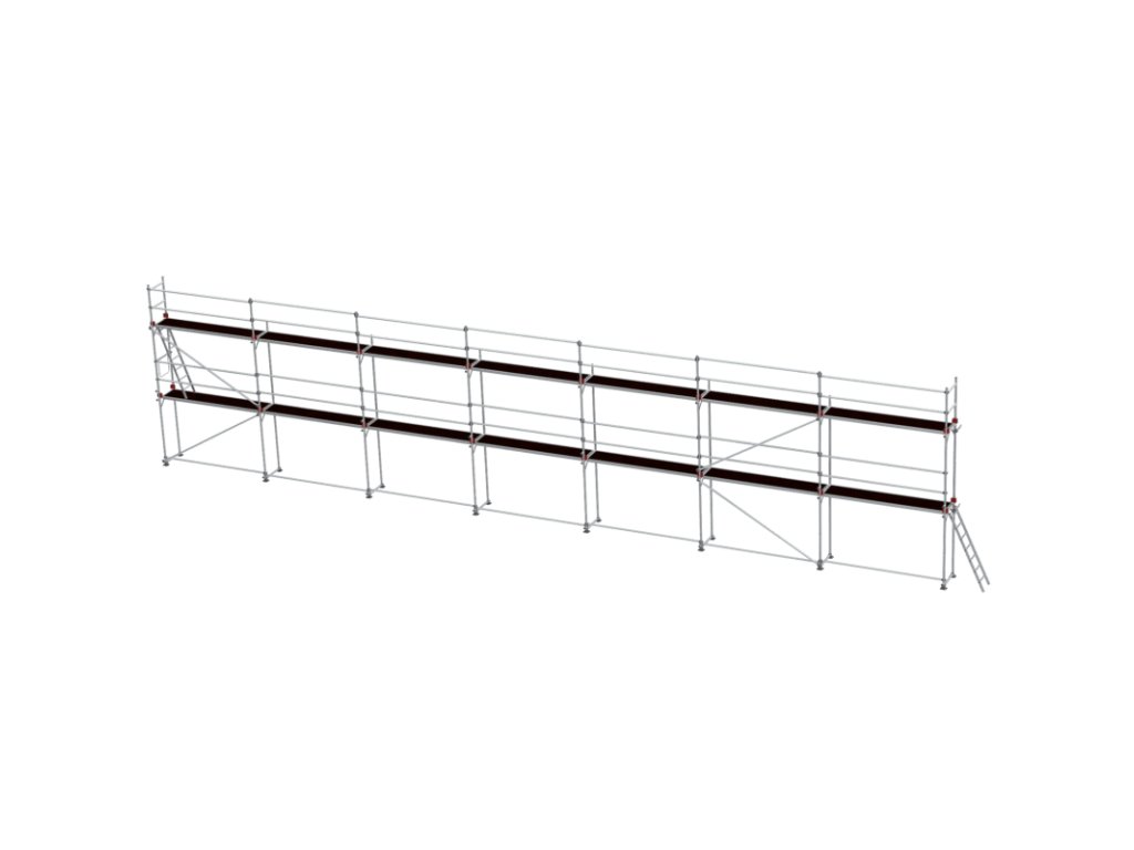 Profesionální fasádní lešení Pro Superflex je navrženo tak, aby vyhovovalo potřebám řemeslníků, kteří vyžadují jak pevnost, tak flexibilitu svého lešeňového systému. Lešení se vyznačuje silnými a lehkými rámy vyrobenými z hliníkové slitiny 6005 T6, která poskytuje optimální kombinaci vysoké pevnosti a nízké hmotnosti. Rámy jsou konstruovány z trubek o rozměrech Ø 50 × 4 mm a jsou plně svařované, což zajišťuje stabilní a bezpečnou konstrukci. Díky tomuto provedení je lešení ideální pro náročné úkoly, kde je spolehlivost klíčová. Hlavní přednosti systému Odolnost: Diagonální výztuhy a zábradlí jsou vybaveny nárazuvzdornými, plně svařovanými čelistmi, které dále zvyšují odolnost a bezpečnost lešení. Díky tomu je systém Superflex vhodný pro malé i velké stavební projekty. Flexibilita: Systém je mimořádně flexibilní a nabízí mnoho možností přizpůsobení, což usnadňuje úpravu lešení podle různých potřeb na staveništi. Efektivita: Lešení se snadno a rychle montuje i demontuje, což šetří čas a zvyšuje efektivitu práce. Pracovní plocha: Lešení je dodáváno s podlážkami JUMBO, které kombinují hliník a vodovzdornou překližku, což zajišťuje bezpečnou a stabilní pracovní plošinu za všech pracovních podmínek. Sada obsahuje: 16 x Boční rám – prodloužení 2 m 8 x Horizontální vzpěra 2 x Rám zábradlí 1 m 35 x Horizontální vzpěra / diagonála 4 x Diagonální výztuhy 13 x Podlážka bez průlezu 1 x Podlážka s průlezem 2 x Žebříky k lešení 16 x Stavěcí šrouby k zajištění stability a vyrovnání lešení 1 x Koncový díl 6 x Koncový sloupek pro zábradlí 26 x Bezpečnostní spony 20 x Klipy na upevnění zadní desky 10 x Kotva se spojkou 10 x Šrouby s okem 10 x HmoždinkyDoplňkové parametry
