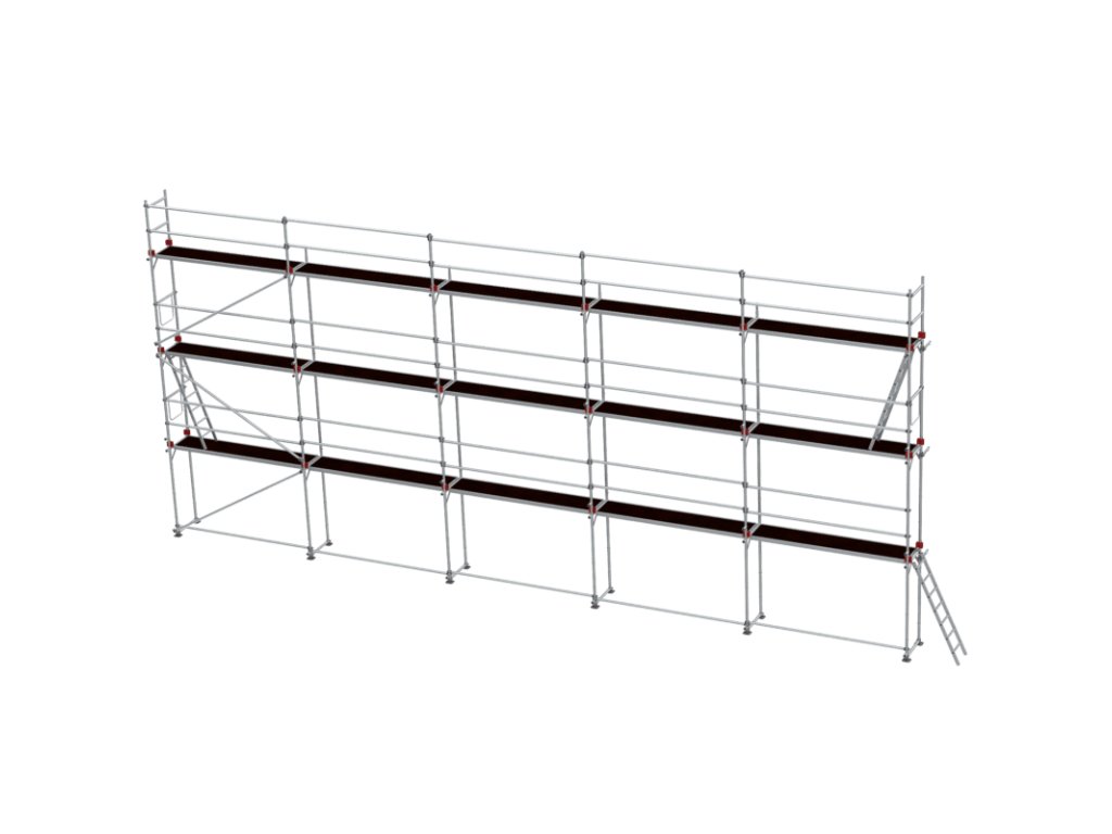 Profesionální fasádní lešení Pro Superflex je navrženo tak, aby vyhovovalo potřebám řemeslníků, kteří vyžadují jak pevnost, tak flexibilitu svého lešeňového systému. Lešení se vyznačuje silnými a lehkými rámy vyrobenými z hliníkové slitiny 6005 T6, která poskytuje optimální kombinaci vysoké pevnosti a nízké hmotnosti. Rámy jsou konstruovány z trubek o rozměrech Ø 50 × 4 mm a jsou plně svařované, což zajišťuje stabilní a bezpečnou konstrukci. Díky tomuto provedení je lešení ideální pro náročné úkoly, kde je spolehlivost klíčová. Hlavní přednosti systému Odolnost: Diagonální výztuhy a zábradlí jsou vybaveny nárazuvzdornými, plně svařovanými čelistmi, které dále zvyšují odolnost a bezpečnost lešení. Díky tomu je systém Superflex vhodný pro malé i velké stavební projekty. Flexibilita: Systém je mimořádně flexibilní a nabízí mnoho možností přizpůsobení, což usnadňuje úpravu lešení podle různých potřeb na staveništi. Efektivita: Lešení se snadno a rychle montuje i demontuje, což šetří čas a zvyšuje efektivitu práce. Pracovní plocha: Lešení je dodáváno s podlážkami JUMBO, které kombinují hliník a vodovzdornou překližku, což zajišťuje bezpečnou a stabilní pracovní plošinu za všech pracovních podmínek. Sada obsahuje: 18 x Boční rám – prodloužení 2 m 6 x Horizontální vzpěra 2 x Rám zábradlí 1 m 35 x Horizontální vzpěra / diagonála 3 x Diagonální výztuhy 13 x Podlážka bez průlezu 2 x Podlážka s průlezem 3 x Žebříky k lešení 12 x Stavěcí šrouby k zajištění stability a vyrovnání lešení 3 x Koncový díl 4 x Koncový sloupek pro zábradlí 32 x Bezpečnostní spony 24 x Klipy na upevnění zadní desky 12 x Kotva se spojkou 12 x Šrouby s okem 12 x HmoždinkyDoplňkové parametry