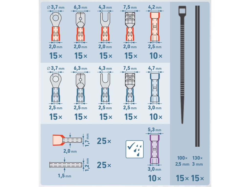 kleště odizolovací/krimpovací a koncovky, sada 231ks, 210mm/0,2-6mm2