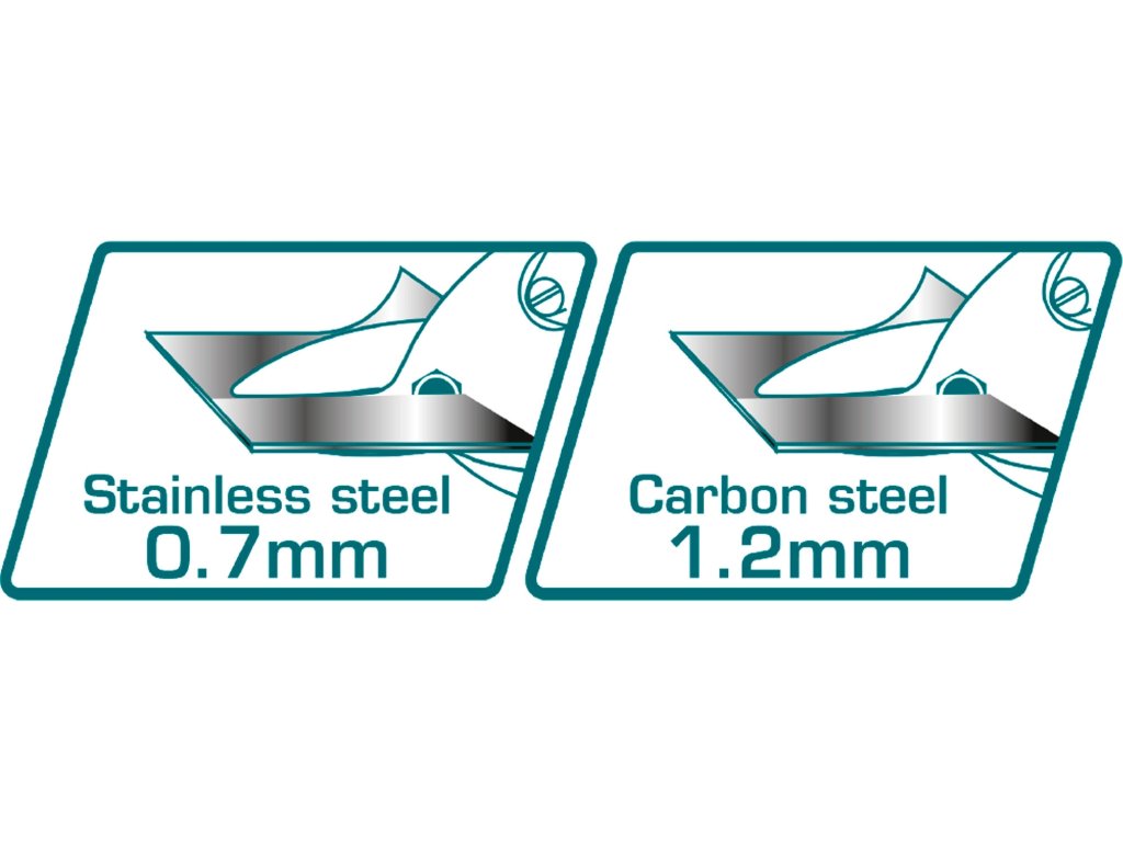 | doplňující parametr: | max. stříhací kapacita 1,2mm pro uhlíkovou ocel a 0,7mm pro nerezovou ocel |
