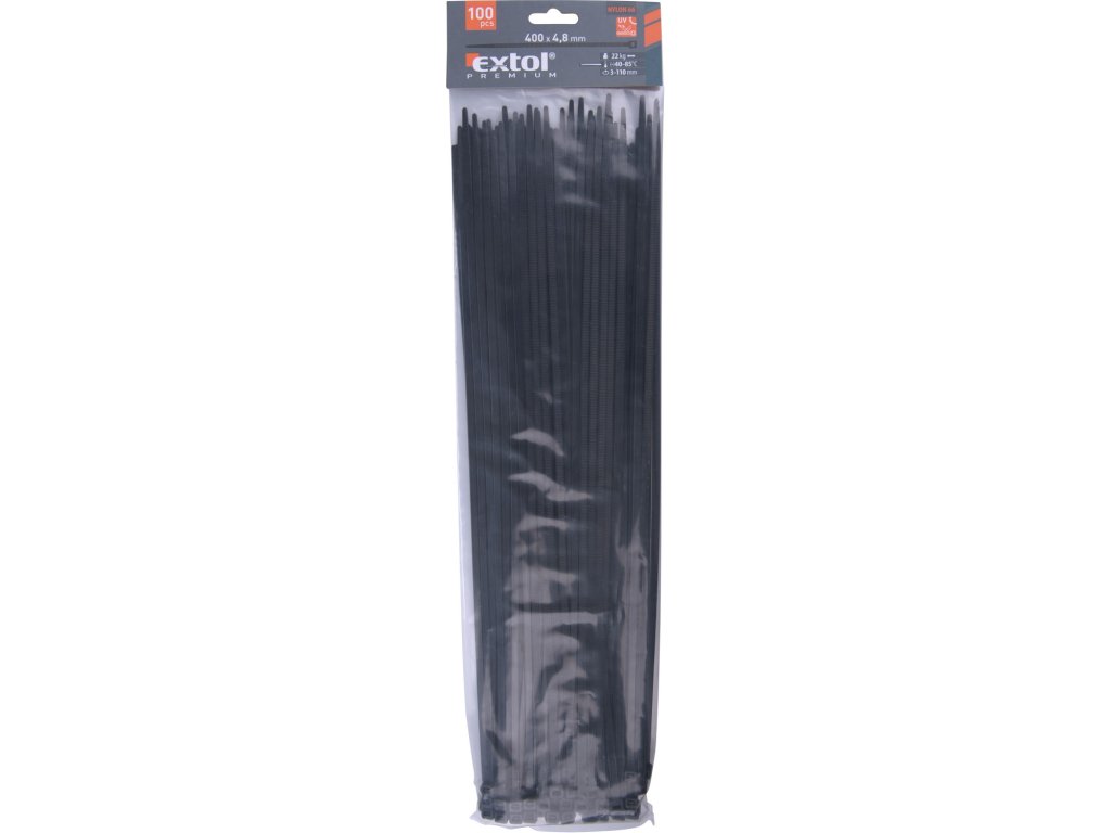 pásky stahovací na kabely černé, 400x4,8mm, 100ks, nylon PA66