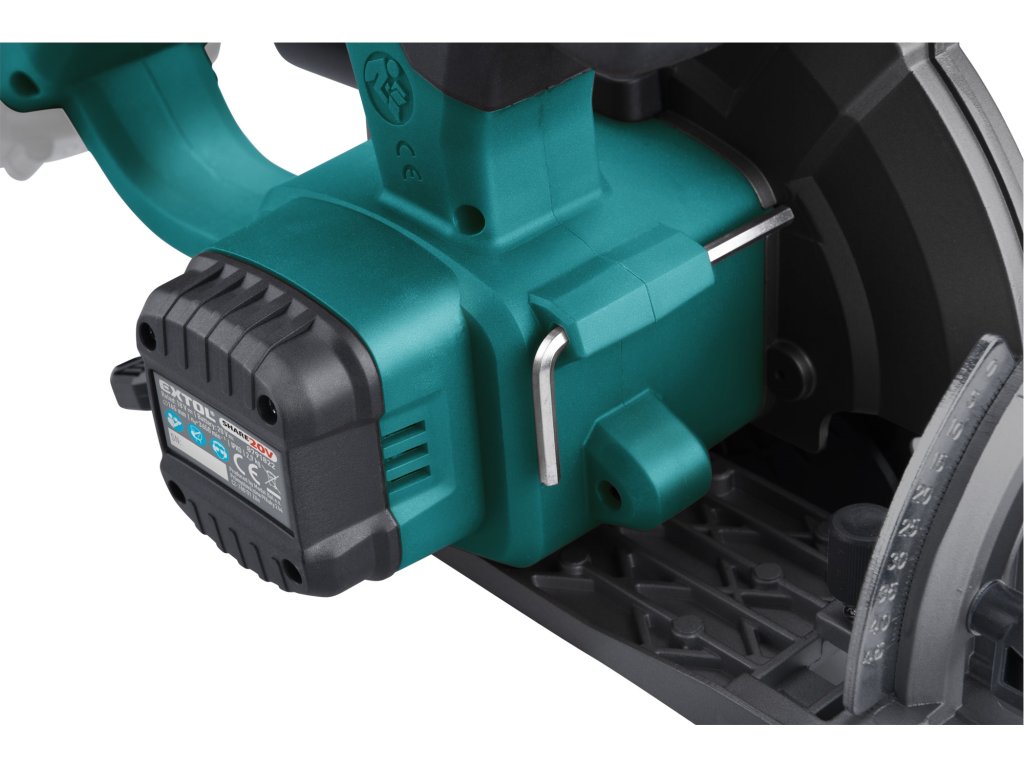 Brushless kotoučová pila je navržena tak, aby uživatelům poskytla výkonné a snadné řezání při různých instalatérských, elektrických, rámovacích, dokončovacích a tesařských pracích. Pila je poháněná nejmodernějším „brushless" motorem s 3650 ot./min umožňuje uživatelům rychle a snadno řezat tvrdým materiálem. Tento nový typ motoru má vyšší životnost, je výkonnější a má menší spotřebu el. energie než klasické motory s uhlíkovými kartáči. Horní a spodní kovový ochranný kryt poskytují vynikající ochranu kotouče při pádu. Gumová měkká rukojeť je ergonomicky navržena tak, aby uživatelům poskytovala vynikající pohodlí a vyvážení pro snadno ovladatelné řezy. Pro běžnou práci dostačují jeden nebo dva 2000mAh akumulátory, které můžete rychle nabít v rychlonabíječce, pro náročnější nebo delší práci doporučujeme větší akumulátory s kapacitou 4000–8000mAh. Akumulátor lze použít ve všech typech nářadí řady EXTOL SHARE20V. Díky použité Li-ion technologii je ho možné kdykoliv dobíjet, aniž by se tím snižovala jeho kapacita. Li-ion akumulátor ztrácí energii vlivem samovybíjení velmi pomalu a vydrží dlouho nabitý a připravený k použití.Doplňkové parametry