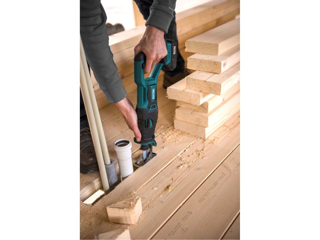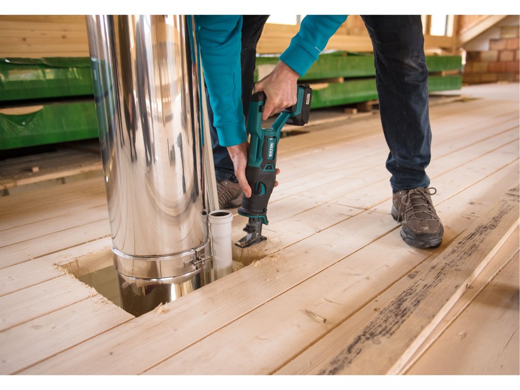 Brushless aku pila ocaska je určena k řezání dřeva, umělé hmoty, kovů a jiných podobných materiálů při práci v dílně, garáži nebo na zahradě. Pila je poháněná nejmodernějším „brushless" motorem. Tento nový typ motoru má vyšší životnost, je výkonnější a má menší spotřebu el. energie než klasické motory s uhlíkovými kartáči. Pružný pilový list umožňuje provádět nejen přímé a obloukové řezy, ale také řezy ve špatně přístupných místech (v rozích, podél zdi), prořezávání stromů. Hlavní výhodou této pily je akumulátorový pohon, který dovoluje si tuto pilu vzít s sebou tam kde s ní potřebujete pracovat, bez ohledu na to, jestli tam je rozvod elektrické energie. Pila má bezpečnostní pojistku proti náhodnému spuštění a je vybavena nastavitelným předkmitem, který si můžete upravit v závislosti na řezaném materiálu. Pro běžnou práci dostačují jeden nebo dva 2000mAh akumulátory, které můžete rychle nabít v rychlonabíječce, pro náročnější nebo delší práci doporučujeme větší akumulátory s kapacitou 4000–8000mAh. Akumulátor lze použít ve všech typech nářadí řady EXTOL SHARE20V. Díky Li-ion technologii je možné akumulátory kdykoliv dobíjet, aniž by se tím snižovala jejich kapacita. Li-ion akumulátor ztrácí energii vlivem samovybíjení velmi pomalu a vydrží dlouho nabitý a připravený k použití.Doplňkové parametry