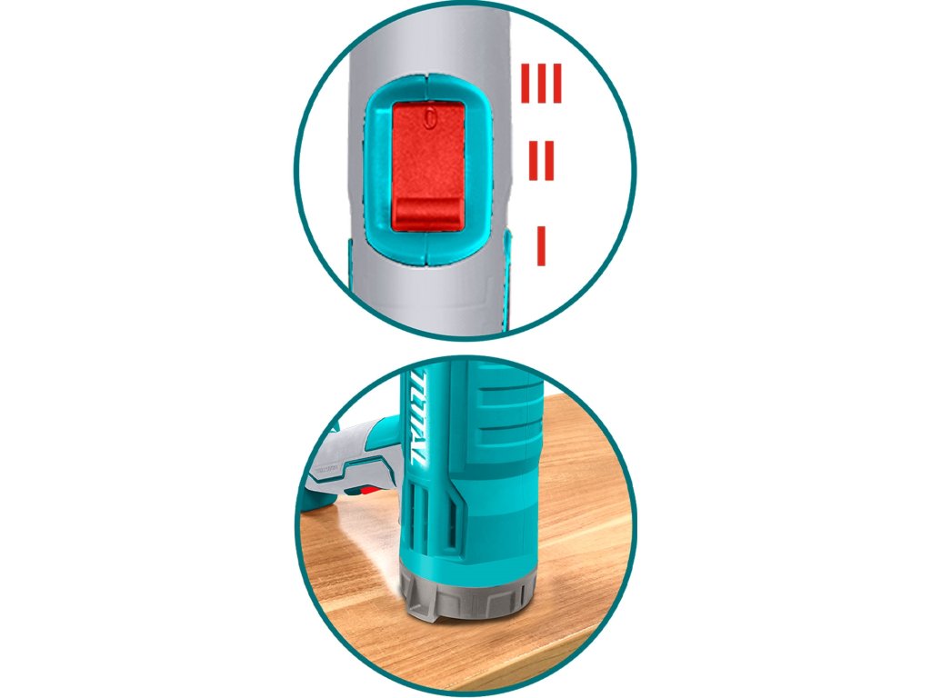 Tato horkovzdušná pistole je určena k nahřívání povrchů za účelem odstraňování starých barev a laků (v malém rozsahu), k tvarování, smršťování a spojování umělých hmot, např. asfaltových krytin (v malém rozsahu), k ohýbání plastových trubek, k uvolňování lepených spojů, dále k rozmrazování zamrzlého potrubí, k odstranění mechu a plevelů ve spárách dlažby, k zapalování grilovacího uhlí, sušení čerstvě nanesených nátěrů atd. • Pistole umožňuje nastavit tři výkonnostní stupně lišící se teplotním rozsahem a průtokem vzduchu. Je vybavena LCD displejem. Pistole je z řady industrial.• Nízká hmotnost pistole zvyšuje komfort při práci.Doplňkové parametry