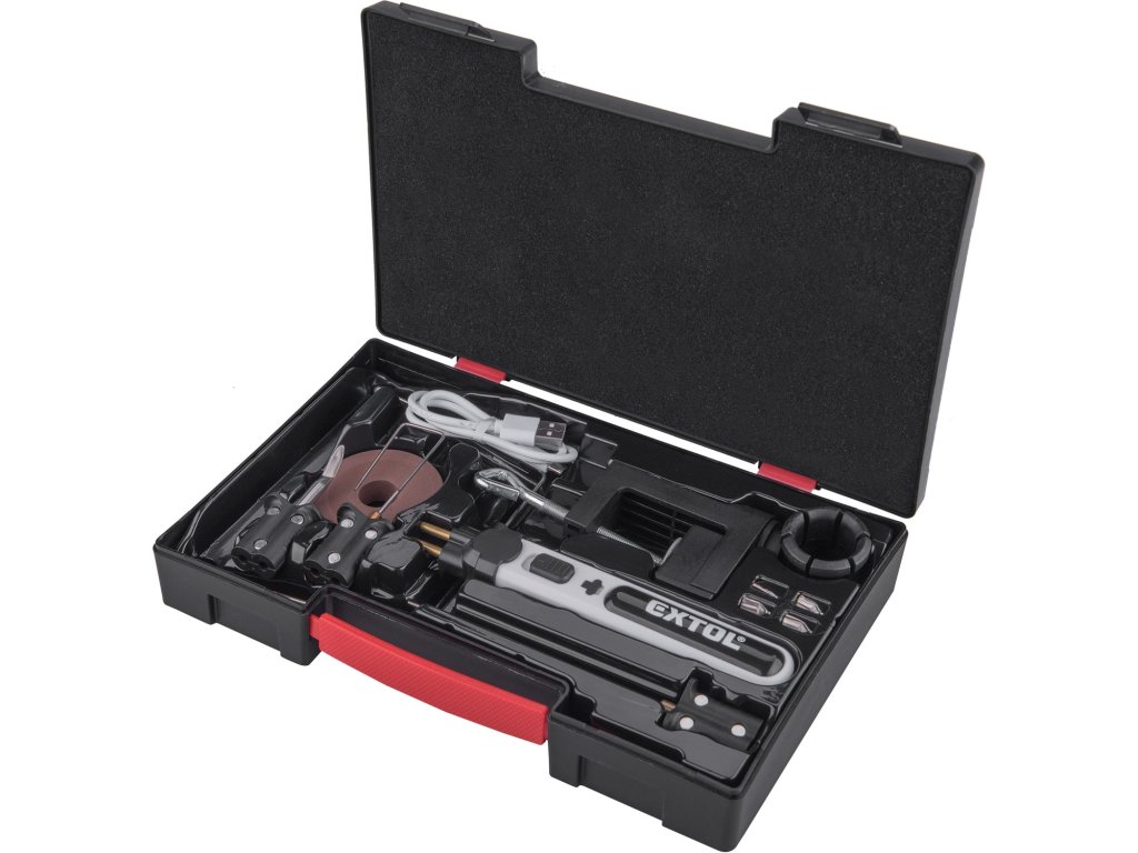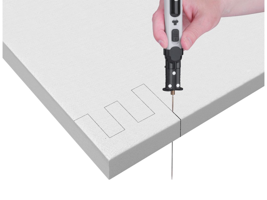 Aku řezačka se sadou řezacích nástavců je určena pro zkracovací, vyřezávací, drážkovací a tvarovací řezné práce v pěnových deskách jako je např. pěnový polystyren, pěnový polyethylen apod. S touto aku řezačkou můžete doma nebo ve škole vytvářet drobné pěnové řemeslné a kutilské projekty. Řezací struna se zahřeje na 100℃ za přibližně 12 sekund a na pracovní teplotu 550℃ přibližně za 30 sekund. Nástroj je vybaven vestavěným LED světlem, které zajišťuje lepší viditelnost a přesnost při řezání i za zhoršených světelných podmínek. Struna na vidlici se používá např. pro jemné a přesné vyřezávání, např. ze silného polystyrenu. Řezací nůž je určen pro vyřezávání větších tvarů v ploše nebo ke zkracování polystyrenu. "U" nůž se používá k "dlabání" neprůchozích dutin v polystyrénu. Pájecí nástavec se používá např. jako pero k psaní textu nebo kreslení do polystyrenu a také lze použít k pájení plastů nebo po nasazení měděných špiček pro měkké pájení. Pro zjednodušení práce lze řezačku pomocí přiloženého držáku upnout na stůl a poté mít obě ruce volné pro manipulaci s materiálem při řezání. Nástroj se nabíjí pomocí standardního USB-C kabelu z jakékoliv USB nabíječky nebo počítače. Plné nabití trvá 3-4 hodiny. Nástroj je uložen v pevné plastové krabici spolu s držákem, USB kabelem a dalším příslušenstvím. Díky Li-ion akumulátoru je možné pistoli kdykoliv dobíjet, aniž by se tím snižovala kapacita akumulátoru. Li-ion akumulátor ztrácí energii vlivem samovybíjení velmi pomalu a vydrží dlouho nabitý.Doplňkové parametry