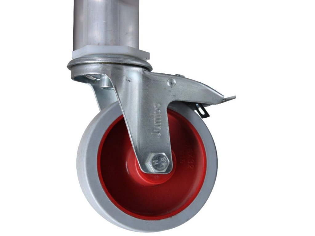 Skládací lešení JUMBO se schody a zábradlím je univerzální a kompaktní lešení o rozměrech 250 × 74 cm. Lešení je vybaveno pevným schodištěm, které usnadňuje přístup do tří pracovních výšek 0,50 m, 0,75 m a 1,00 m. Schodiště lze při skladování lešení složit, takže je prostorově úsporné a praktické. Toto lešení je vyrobeno z odolného hliníku profesionální kvality a je vhodné pro práce uvnitř i venku. Plně svařované rámy a protiskluzová, vodotěsná plošina zajišťují stabilitu i bezpečnost při práci. Lešení je vybaveno koly Ø125 mm s brzdami, které usnadňují jeho přemisťování. Toto lešení je ideální pro úkoly, kde není vyžadována velká pracovní výška, ale bezpečnost a efektivita jsou prvořadé. Sada obsahuje: 6 x Otočné kolečko s brzdou 1 x Plošina bez průlezu 1 x Skládací rám pro 250SKT M/stairs U/wheels 2 x Horizontální / diagonální vzpěraDoplňkové parametry