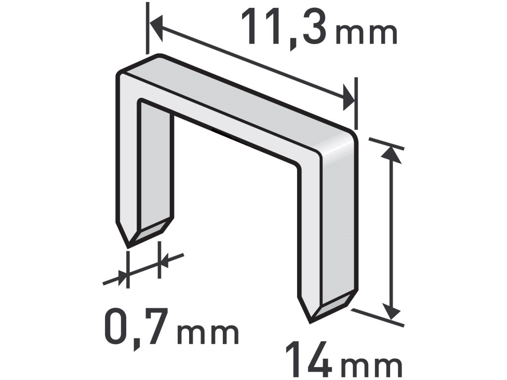 spony, balení 1000ks, 14mm, 11,3x0,52x0,70mm