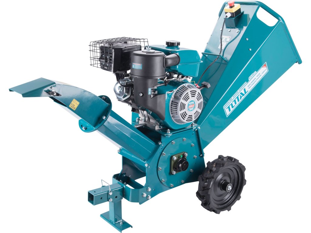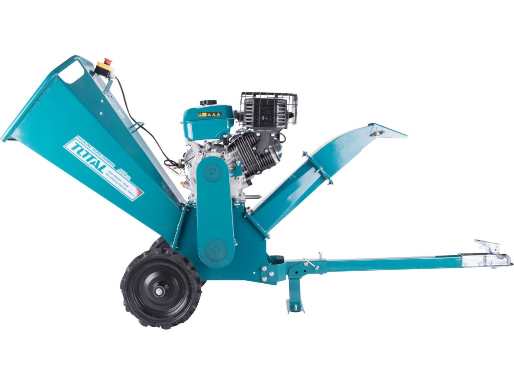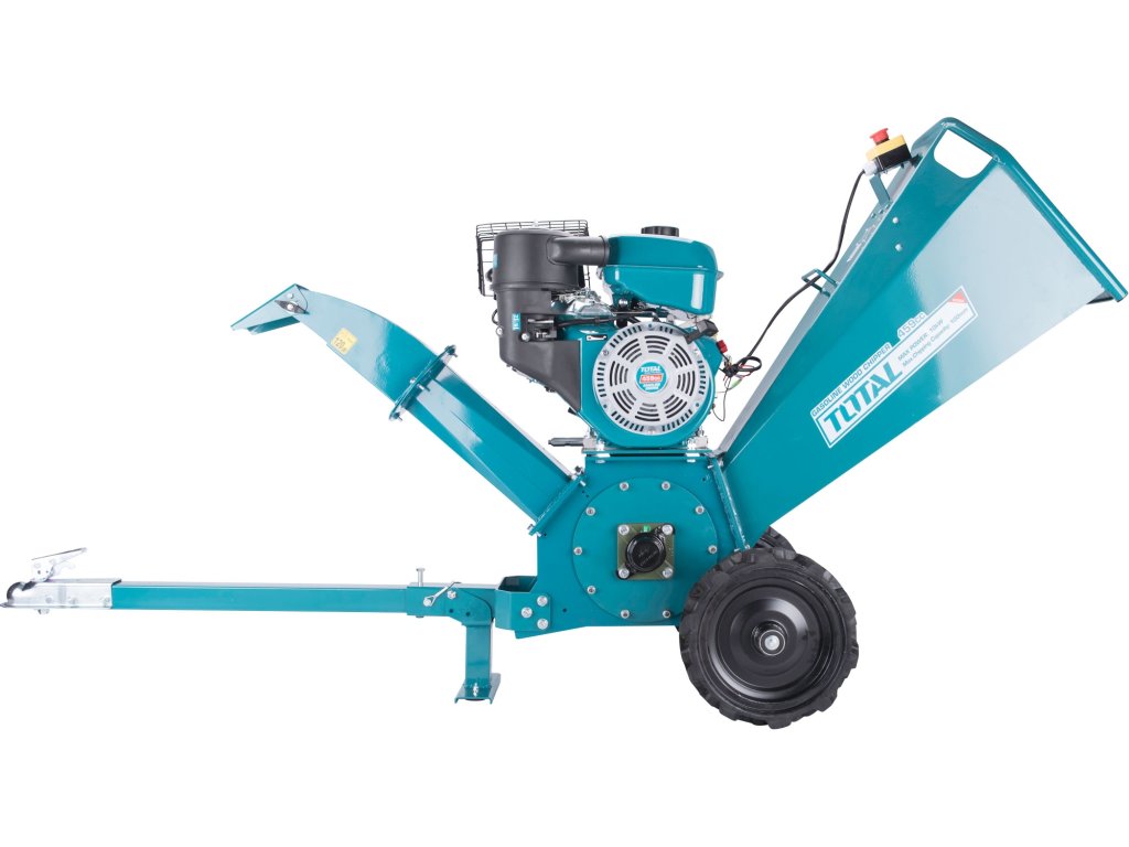 Výkonný benzinový štěpkovač značky Total je konstruován jako drtič dřeva určený pro drcení všech druhů čerstvě nařezaného dřeva s průměrem specifikovaným v technických datech (liší se podle modelu stroje).Stroj také umožňuje drcení kořenů, ale tyto kořeny musí být očištěny od písku, zeminy, kamenů a jiných materiálů. Maximální průměr větví 100mm, Velikost štěpky (po zpracování): 7-35mm. Účinnost štěpkování je až 1000kg/h. Otáčky nožového kotouče 3000/min. Rozměr čepele: 195*55*7mm. Jmenovitý výkon motoru je 10kW, Zdvihový objem motoru 459 cm krychlových, Startováno ručním navíjecím startérem. Celkové rozměry (d x š x v) jsou 1 685 × 660 × 1 135 mm. Hmotnost stroje je 115kg. Průměr klikového hřídele 25mm. Rozměr pneumatiky 5.00-9. Doporučený typ oleje je SAEl0W-40, objem oleje 1,1L. Typ paliva bezolovnatý benzín s oktanovým číslem minimálně 92.Doplňkové parametry