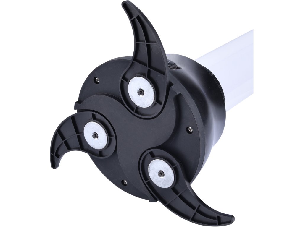 Prostorové nabíjecí světlo je zdrojem příjemného mléčného neoslňujícího světla. Jedná se o technické světlo pro použití např. v dílnách. Světlo je svou velikostí a vyzařováním světla v rozsahu 360° určeno pro umístění do prostoru. Na světle je možné nastavit 100% nebo 50% intenzity světla. Funkce constant power zajišťuje svícení světla na plný výkon bez výraznějšího poklesu intenzity. Světlo je na základně vybaveno silnými magnety, kterými je možné jej uchytit na magnetický povrch v jakékoli poloze (např. i na strop). Na základně světla lze vysunout stabilizační nožičky pro zvýšení stability světla postaveného na rovině. Světlo je odolné proti dešti a prachu. Zcela nabitá baterie při 100% intenzitě svitu vydrží téměř celou pracovní dobu. Díky Li-ion akumulátoru je možné světlo kdykoliv dobíjet, aniž by se tím snižovala kapacita akumulátoru. Li-ion akumulátor ztrácí energii vlivem samovybíjení velmi pomalu a vydrží dlouho nabitý, proto je toto světlo vždy připraveno.Doplňkové parametry