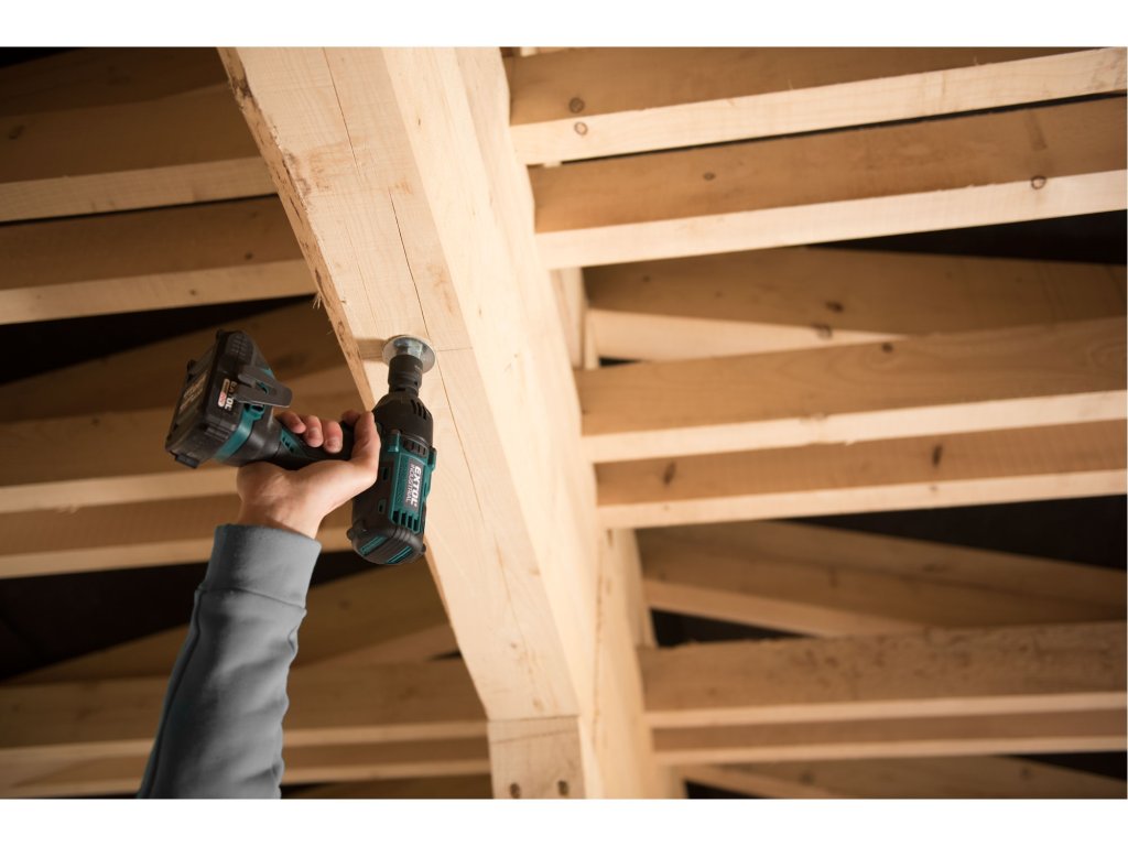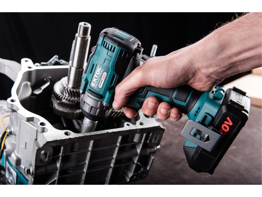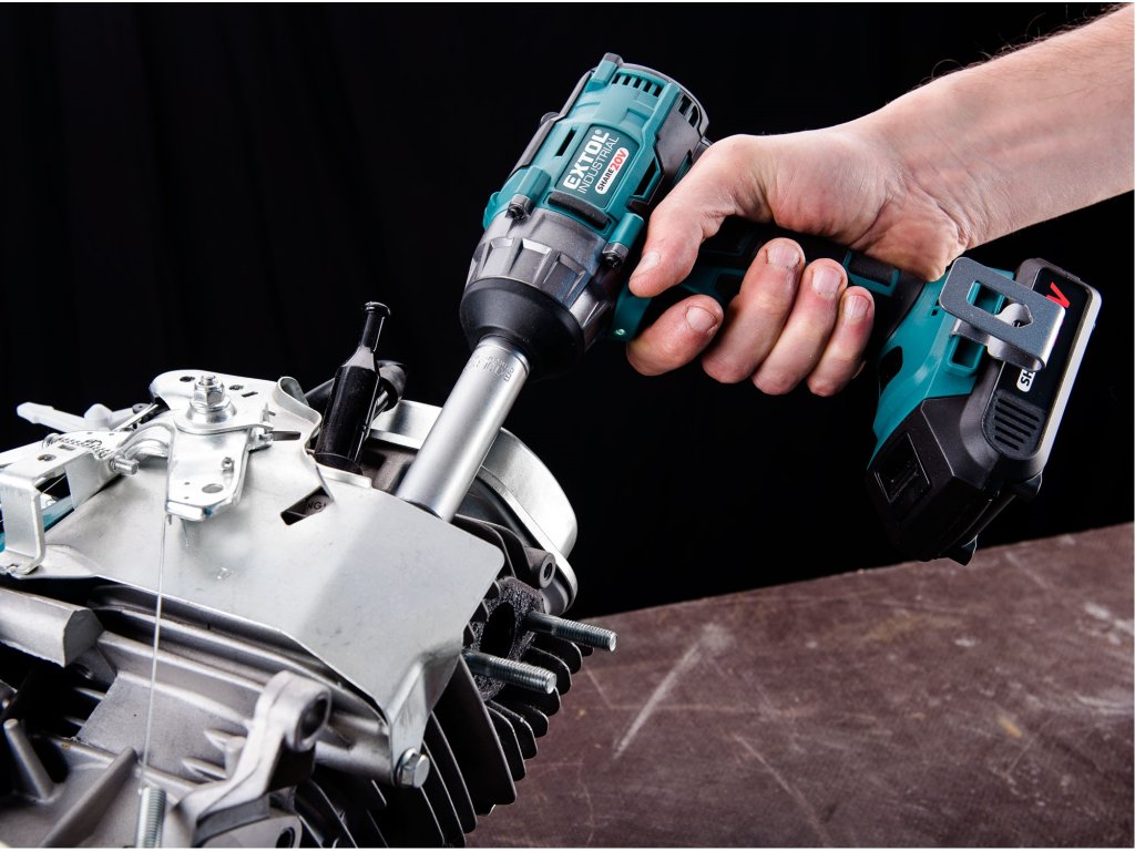 Lehký a výkonný rázový brushless aku utahovák s vysokým max. kroutícím momentem 250Nm Vám poskytuje výkon, který potřebujete k dokončení široké škály utahovacích operací – utahování a povolování šroubů. Utahovák je poháněná nejmodernějším „brushless" motorem. Tento nový typ motoru má vyšší životnost, je výkonnější a má menší spotřebu el. energie než klasické motory s uhlíkovými kartáči. Rázový moment zvyšuje sílu utahováku při šroubování a zároveň snižuje spotřebu baterie. Proto je při šroubování mnohem efektivnější než aku vrtačka a také zašroubuje více šroubů na jedno nabití baterie. Celokovová převodovka uložená v kovovém pouzdru zajišťuje bezchybný chod při i vysoké zátěži a přispívá k lepšímu odvodu tepla vznikajícího při práci. Pro běžnou práci dostačují jeden nebo dva 2000mAh akumulátory, které můžete rychle nabít v rychlonabíječce, pro náročnější nebo delší práci doporučujeme větší akumulátory s kapacitou 4000–8000mAh. Akumulátor lze použít ve všech typech nářadí řady EXTOL SHARE20V. Díky použité Li-ion technologii je ho možné kdykoliv dobíjet, aniž by se tím snižovala jeho kapacita. Li-ion akumulátor ztrácí energii vlivem samovybíjení velmi pomalu a vydrží dlouho nabitý a připravený k použití.Doplňkové parametry
