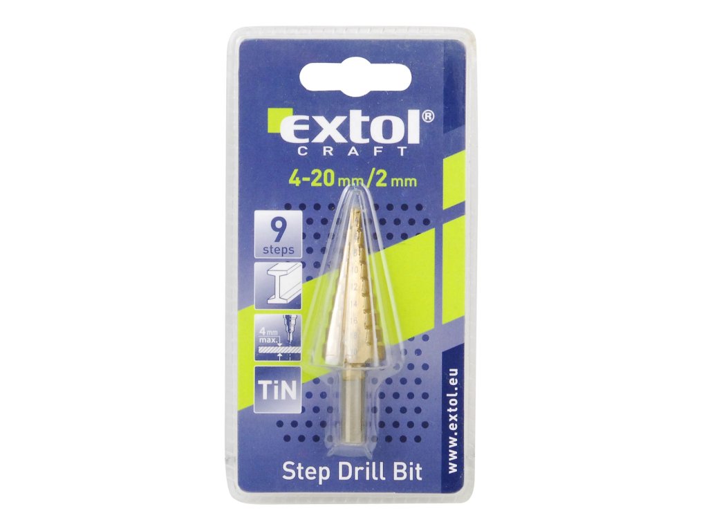 Tyto stupňovité vrtáky lze použít pro vrtání do měkčích materiálů, např. měkkých kovů, dřeva, plastů a plexiskla. Kuželový vrták je určen pro plynulé a bezhrotové vrtání a navrtávání otvorů bez deformace plechu. Vrtáky je možné znovu naostřit.Doplňkové parametry