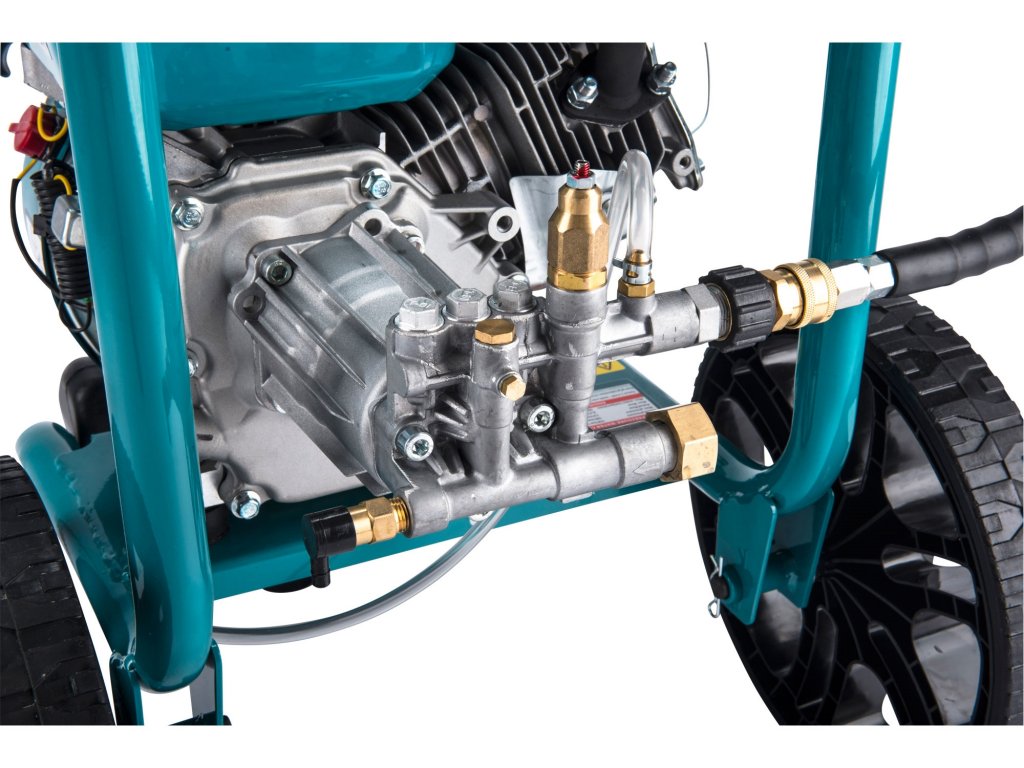 Lehký vysokotlaký motorový vodní čistič vyniká vysokým tlakem vody na výstupu – až 186bar, který zaručuje jeho vysoký čistící výkon. Srdcem čističe je kvalitní HERON motor a čerpadlo italské značky AR, které mu dávají vysoký výkon a dlouhou životnost. Stroj je tak určen k velice efektivnímu a rychlému čistění povrchů a ploch z kamene, dřeva, kovu, plastu jako např. chodníků a teras za účelem odstranění mechu a řas, dále fasád domů, zahradního nářadí, zemědělských strojů atd. Hlavní uplatnění nachází tento výrobek na stavbách, po povodních, čištění aut a zemědělské techniky a pro místa kde není vždy dostupný el. proud a je třeba vyčistit větší plochy. Na jednu 3,6l nádrž benzínu můžete nepřetržitě pracovat 2h. Čistič má kompaktní konstrukci s velmi malým půdorysem a v rámu je zabudovaná nádoba pro saponát, který se používá pro šamponování. Tlaková hadice s ocelovou výztuhou ma na obou koncích kompatibilní rychlospojky a pokud potřebujete delší dosah hadice můžete zapojit dvě za sebou. Sklopitelné madlo a pevná kola, která jsou součástí dodávky, umožňují snadný převoz stroje na místo použití podobným způsobem jako cestovní zavazadlo s madlem a kolečky. Součásti dodávky je 5 trysek (0º, 15º, 25º, 40º a šamponovací), 10m tlaková hadice s rychlospojkami a stříkací pistole s hubicí. Pomocí adaptéru 8895231 lze na stroj připevnit spoustu dalšího příslušenství v naší nabídce.Doplňkové parametry
