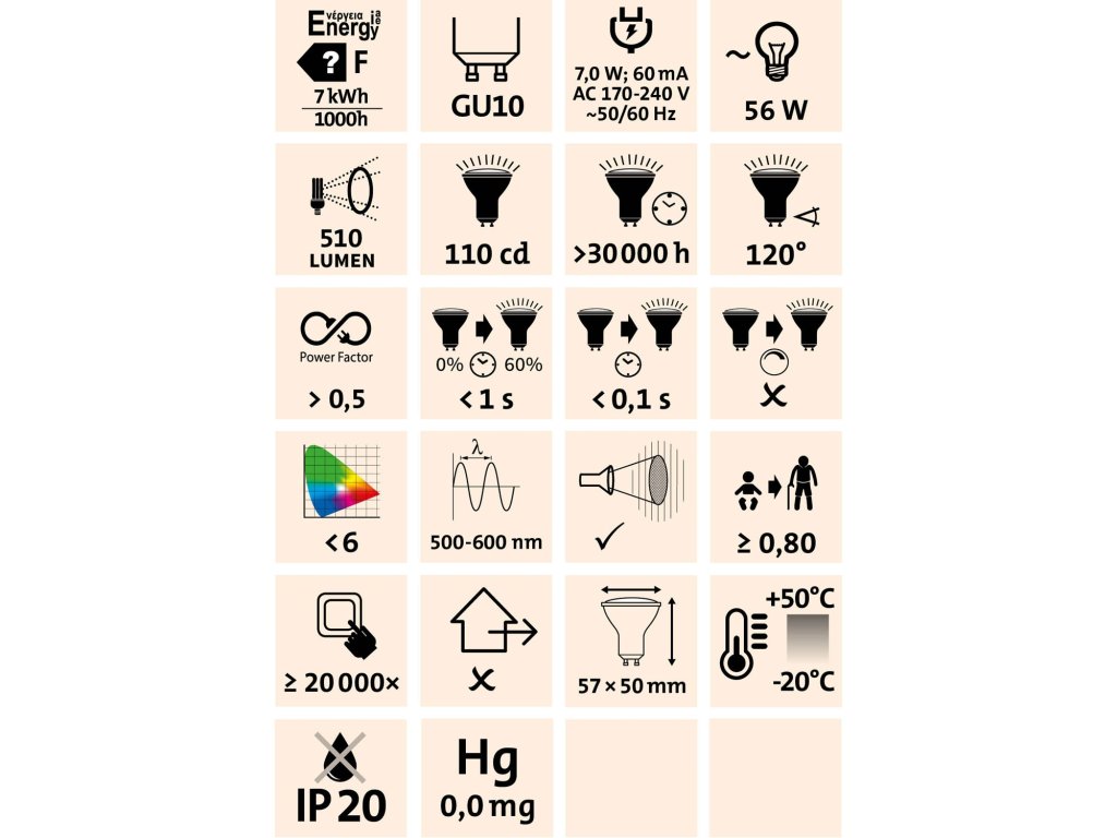 technické parametry: | 510lm, 7W, GU10, teplá bílá |
